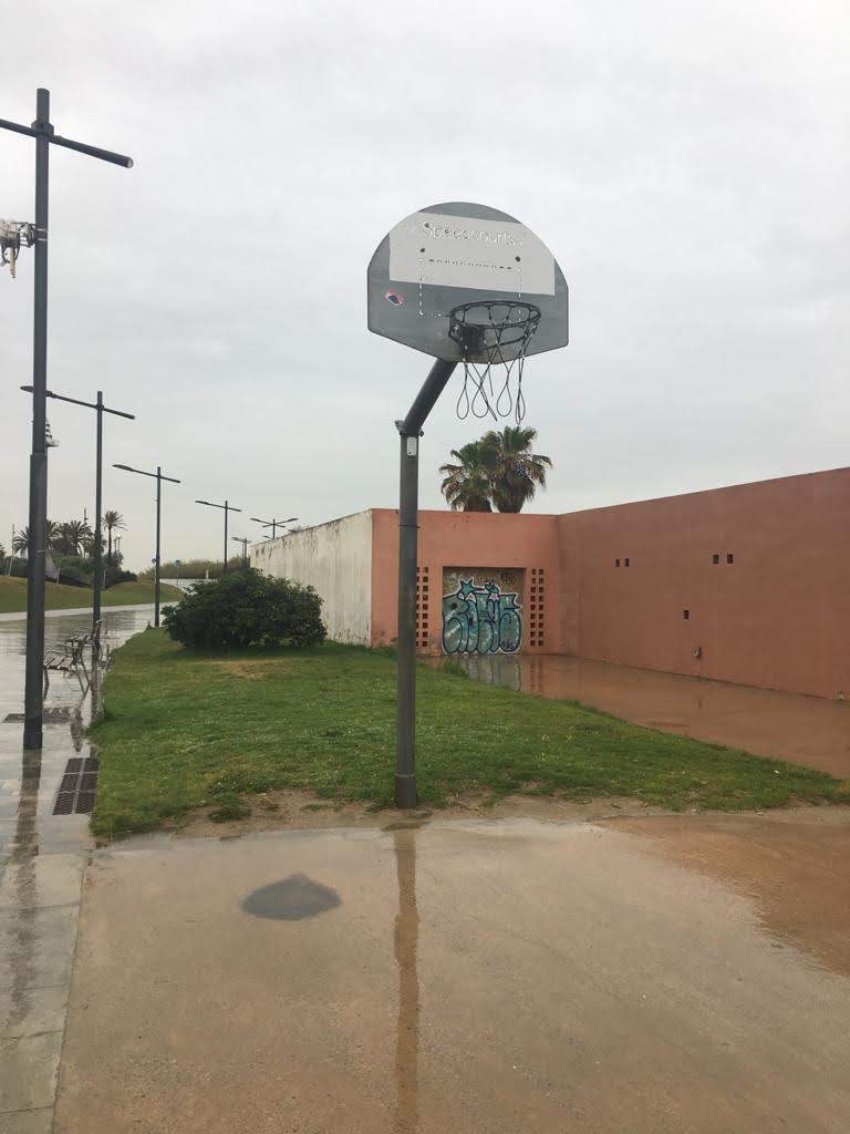 Es una canasta al lado de la base náutica donde puedes ir a jugar a baloncesto con tus amigos.