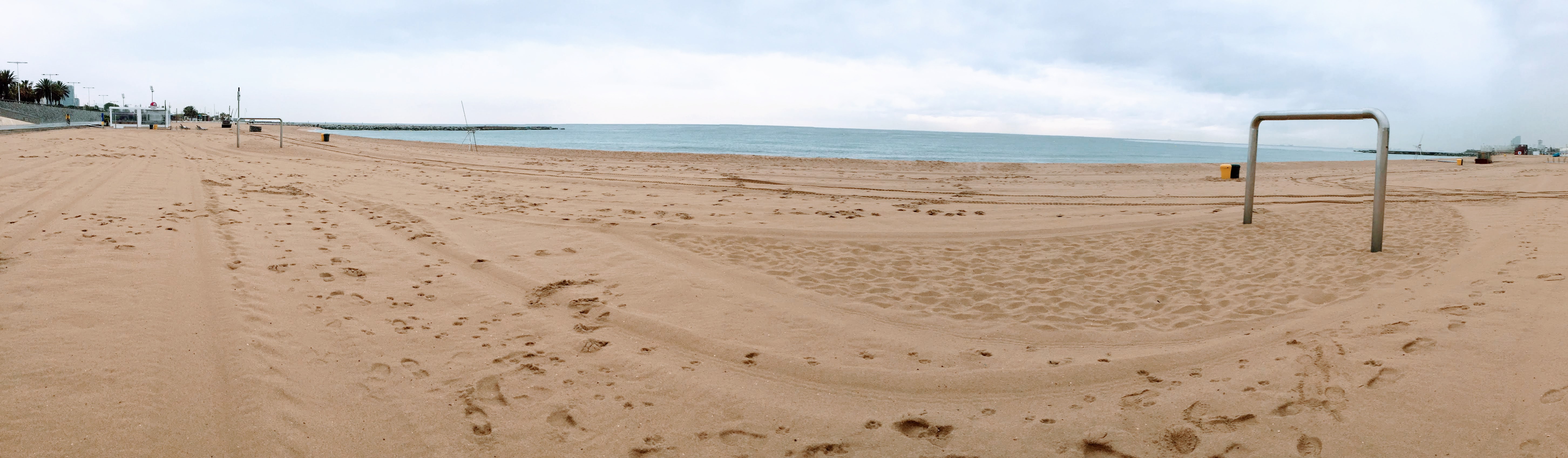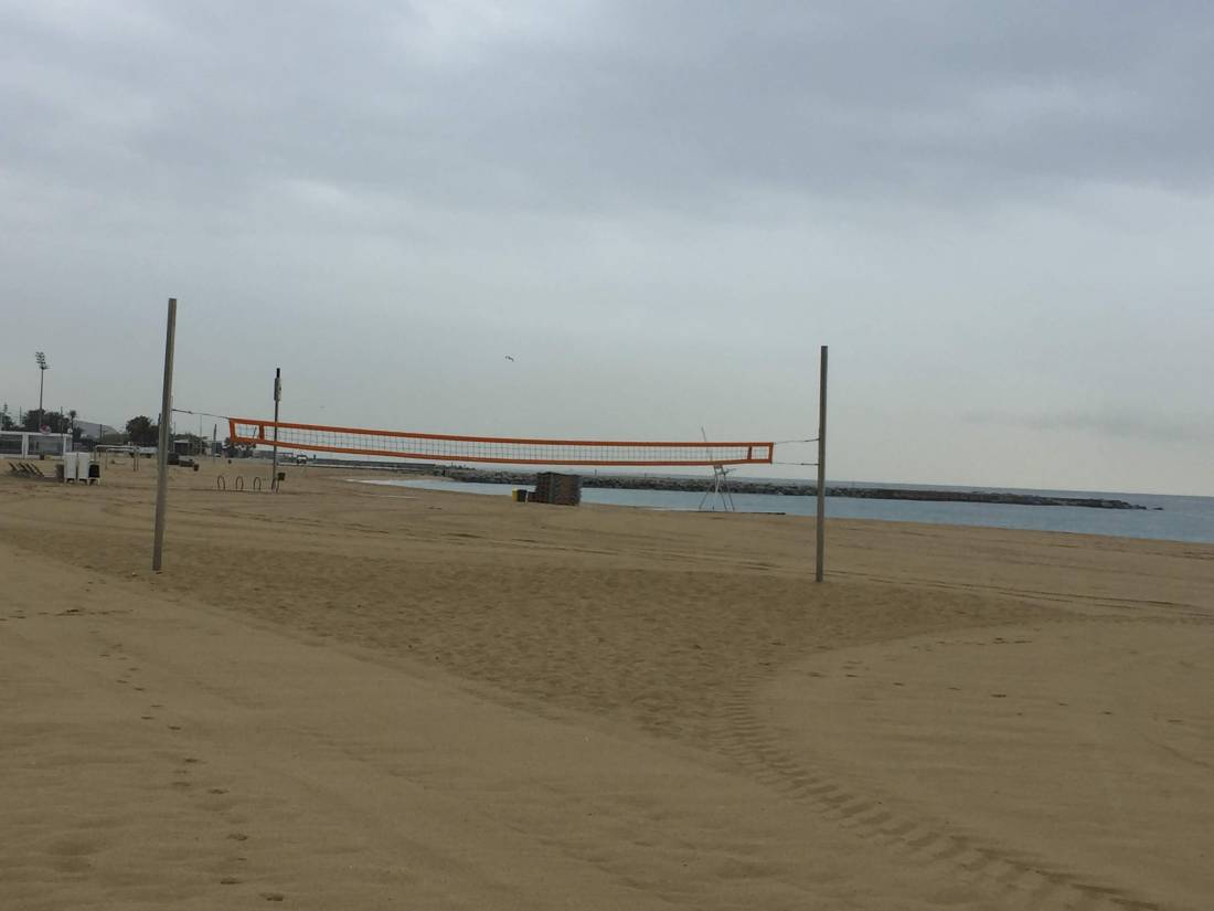 Como muchos otros puntos públicos de la ciudad, en la Mar Bella también hay maquinas para hacer estiramientos y mesas de ping pong.